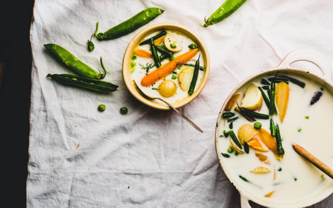 The root vegetables are joined by green and yellow beans as well as freshly shelled peas, all brought together in salted boiling water. Some recipes are thickened with flour or cornstarch, while others reply on heavy cream and butter for a full mouthfeel.