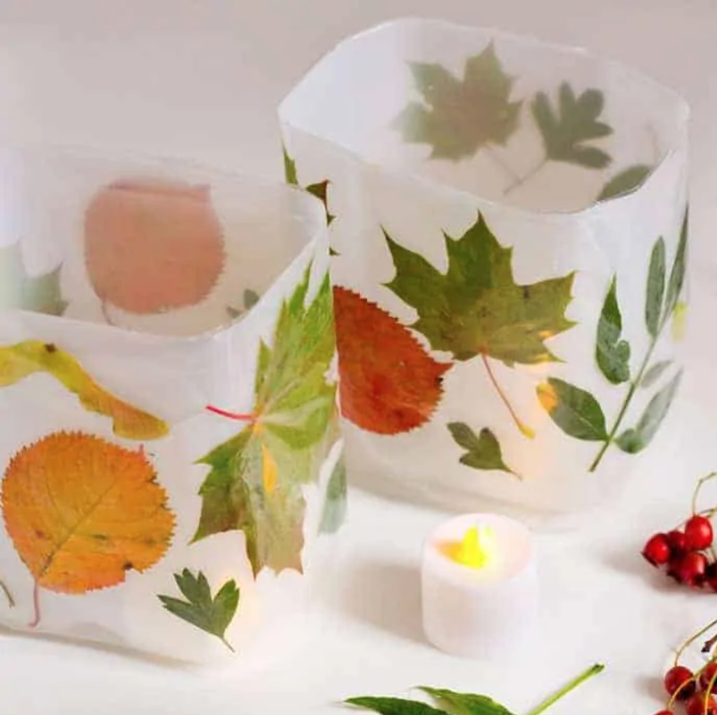 A jack-o-lantern doesn’t have to be the only festive light show in your home this year. Head out on a walk to find fall leaves for your materials, and spend an evening arranging them perfectly for these gorgeous luminaries. Check out the full tutorial here for DIY Leaf Luminaries.