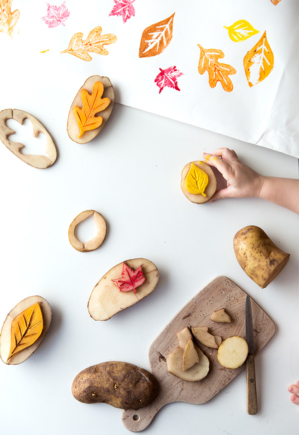 Need to keep some small hands busy? Try this Fall Leaf Potato Stamping tutorial with your market potatoes. Stamp away!